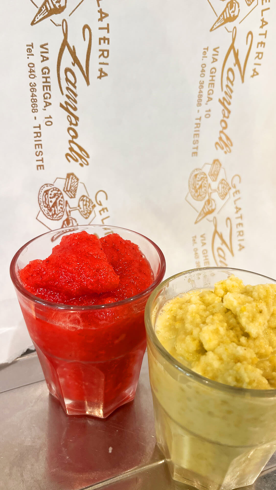 La nostra storia inizia circa un secolo fa, quando la nostra gelateria possedeva altre due sedi: una in via Cavana e l’altra in viale XX settembre dove i due fratelli Zampolli, Michele e Giovanni, iniziarono a produrre gelati attorno agli anni ’30. L’azienda passò poi nelle mani dei Piccin e quindi, oggi, di Giulio Piccin che, assieme a sua moglie Gabriella e alle figlie, rimane fedele all’artigianalità della famiglia Zampolli.